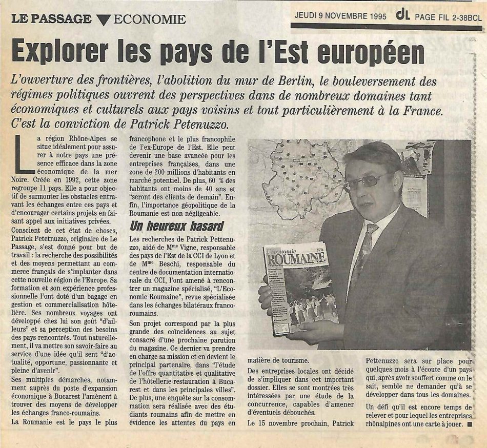 Enfin, le hasard d’une rencontre d’un énergumène atypique qui produisait une revue de 24 pages, autant économique que culturelle avec pour mission de favoriser les relations franco-roumaines, à partir de sa salle à manger à Aulnay sous-bois, amoureux du pays depuis son mariage avec une fille de Sibiu. Mais qui, selon mon souvenir, avait aussi fait les langues O à la faculté.